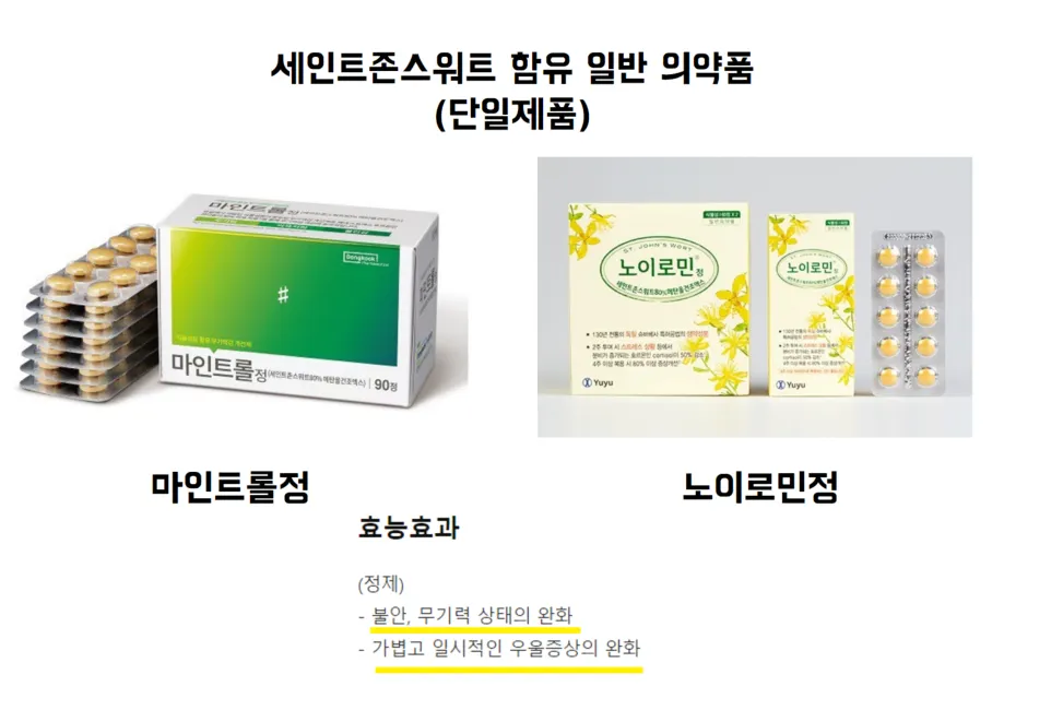 이 중 세인트존스워트만 함유한 제품은 우울감, 스트레스 개선에 활용되는 제품이어서,