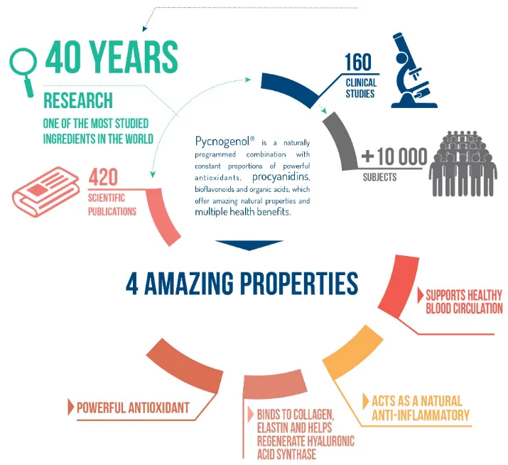 소나무껍질 추출물은 중국의 소나무 껍질 추출물 (적송) 과 프랑스 소나무 껍질 추출물 (해안송) 구별되는데, 그 중에서도 프랑스 해안송에서 유래한 원료로 40년 이상 연구된 Horphag Research社의 피크노제놀을 제일 선호합니다.